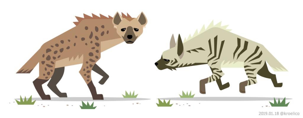 ブチハイエナとシマハイエナの図。