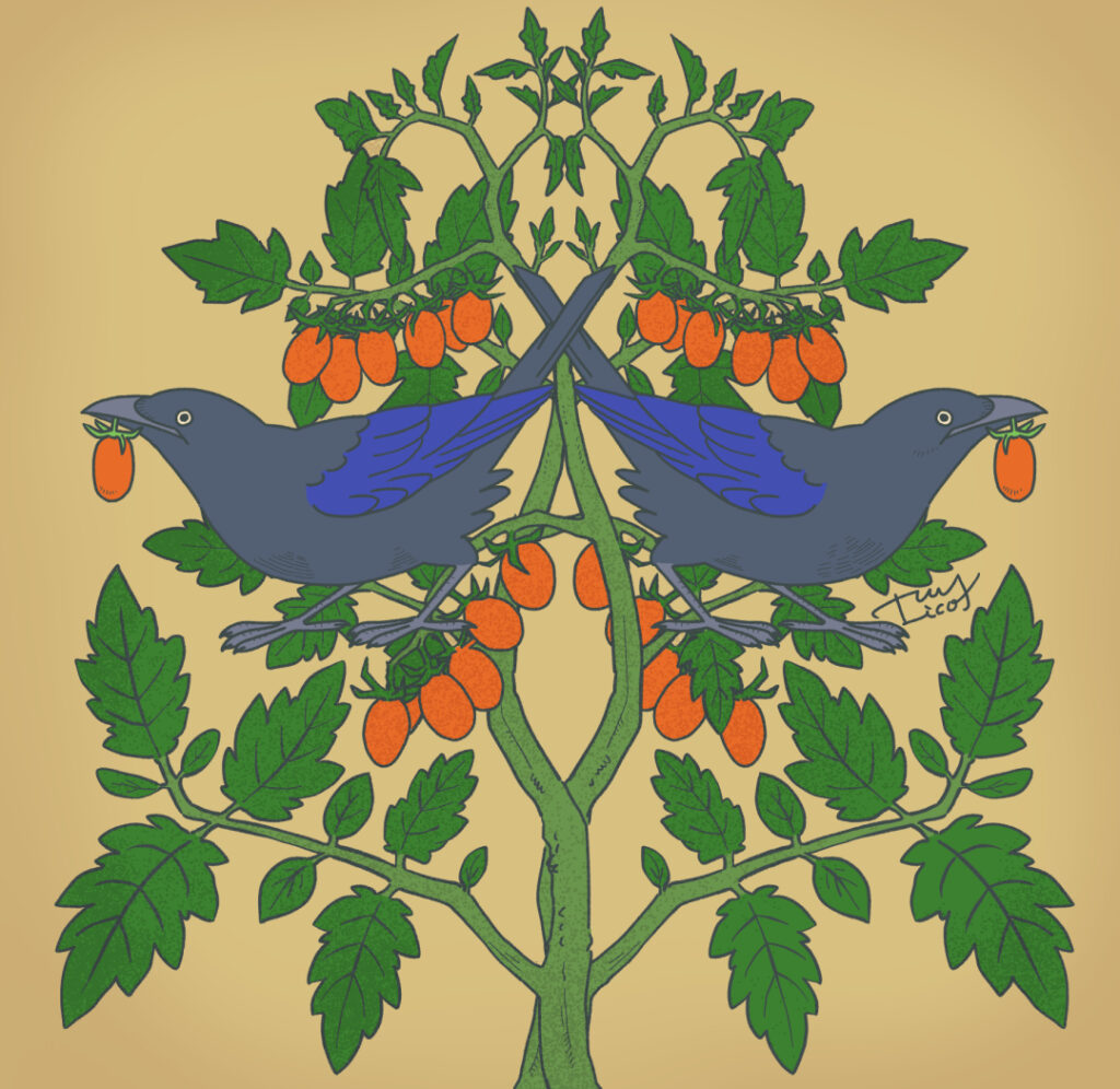 今年は庭でトマトを育てていたのですが、ちょくちょくカラスに味見されてしまいました。