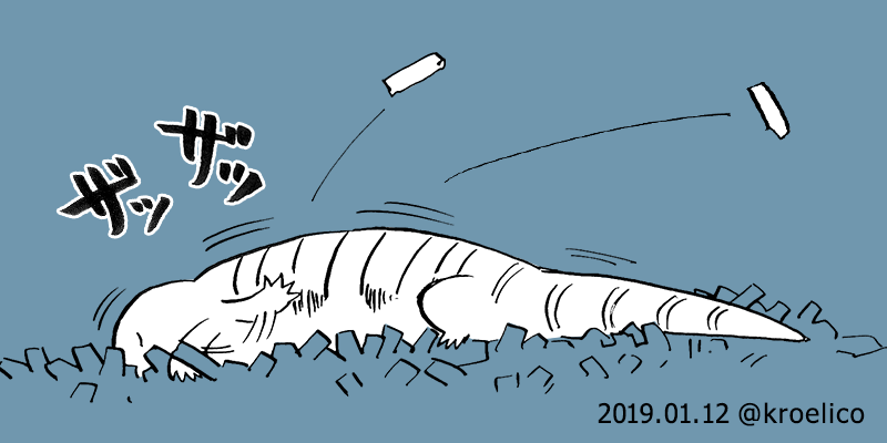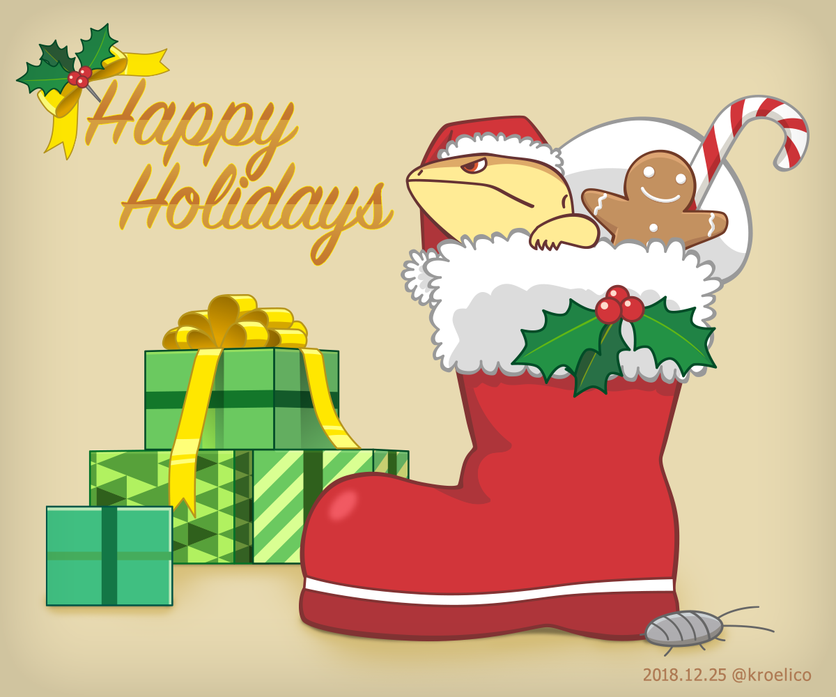 2019年の年賀イラストです。こちらは大晦日のこたつトカゲ。